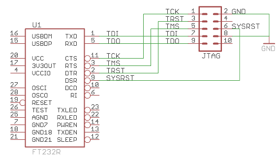 Using these boards, one could easily build a simple JTAG programmer, for example: