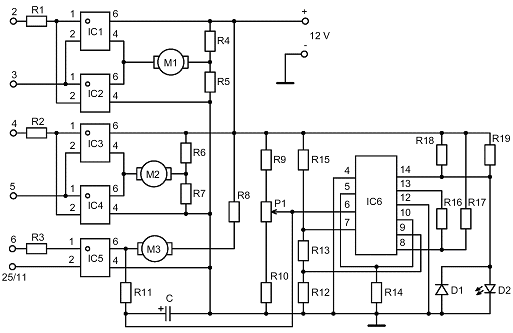 - Частоту вращения электродвигателей можно произвольно менять (для этого повторите пп.2 и 3). “Мотор 1” и “Mотор 2” могут вращаться в двух направлениях, а “Mотор 3” только в одном.